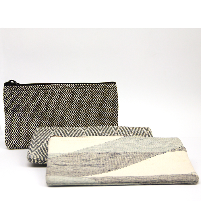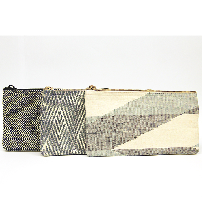 A cool pouch to store what you want. Handy for makeup stuff or to store pens, pencils and scissors. ANNA NERA made them in different sizes and dessins. Woven and sew by hand with love. The inside is fully lined with unbleached cotton. Take good care of it.